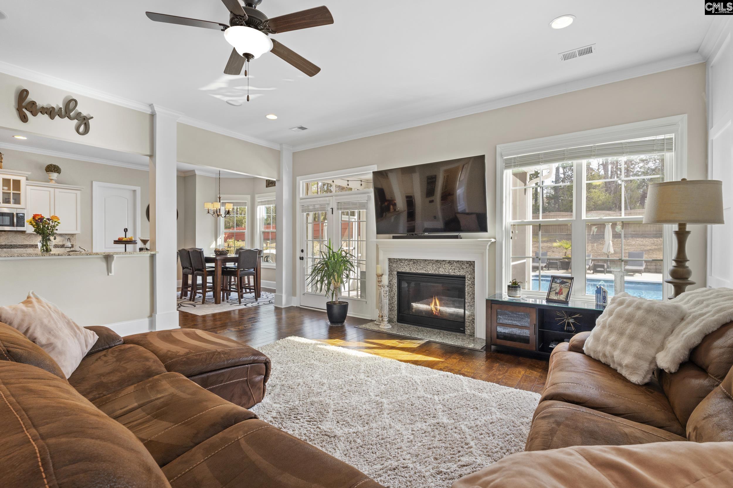 Welcome to this stunning 5-bedroom, 4.5 bath home located in the highly desirable Portrait Hill subdivision, zoned for award-winning Chapin schools and conveniently close to I-26, shopping and dining. Designed for both everyday living and entertaining, this home features a private backyard oasis complete with a large 18x41 in-ground salt water pool, screened porch, fenced yard, and peaceful wooded views. Inside, you're welcomed by elegant coffered ceilings in the dining room and a spacious formal sitting room. Beautiful flooring flows into the open living area with a fireplace beautifully accented by molding. The large-open kitchen boasts granite countertops, a tiled backsplash, built in double oven, island, eat-in area and an impressively large pantry. A main-level bedroom with a full bath perfect for guests. Upstairs, the expansive primary suite features its own sitting area, walk-in closet, dual vanities, tiled shower and garden tub. Three additional bedrooms, two full baths, a laundry room, and a large FROG complete the upper level- ideal for a media room, or home gym. This home truly has it all- space, style and location. Disclaimer: CMLS has not reviewed and, therefore, does not endorse vendors who may appear in listings.