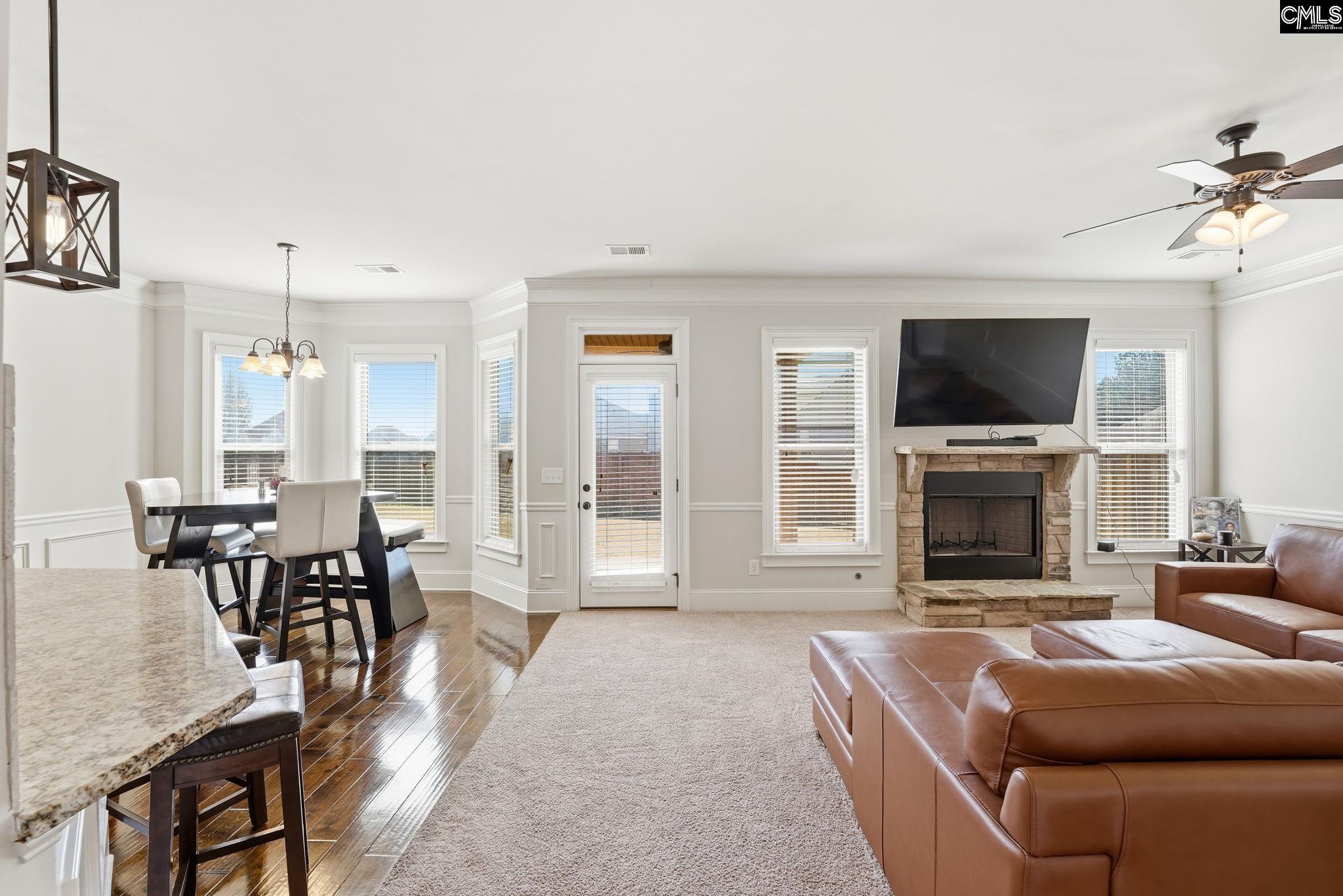 Welcome home to this beautifully maintained gem, perfectly positioned on a quiet cul-de-sac lot with a spacious, private yard. From the moment you arrive, the pride of ownership is undeniable — this home is truly move-in ready. Step inside to rich hardwood floors flowing throughout the main living areas, complemented by elegant extra molding that gives this home a custom, elevated feel. The open-concept kitchen connects seamlessly to the living room and sunny breakfast nook, appointed with gleaming granite countertops perfect for entertaining. The living room is anchored by a classic stone fireplace, adding warmth and charm year-round. A dedicated dining room and private home office round out the main level beautifully. With five total bedrooms, there is room for everyone. The expansive master suite is a true retreat, featuring a generous sitting room and cozy electric fireplace — your personal sanctuary at the end of every day. The main level also offers a full bedroom and complete bath, ideal for guests, in-laws, or multi-generational living. Step outside to the covered back porch and enjoy your private outdoor oasis. The large backyard offers ample space for entertaining, gardening, or simply soaking in the fresh air. Peace of mind comes standard — the roof has been recently replaced, and the home has been meticulously maintained throughout. The cul-de-sac setting provides reduced traffic, added safety, and a true neighborhood feel. From hardwood floors to granite countertops, dual fireplaces to a master retreat with sitting room — Very convenient to Fort Jackson, shopping and interstate. this home checks every box. Disclaimer: CMLS has not reviewed and, therefore, does not endorse vendors who may appear in listings. Seller will consider renting.