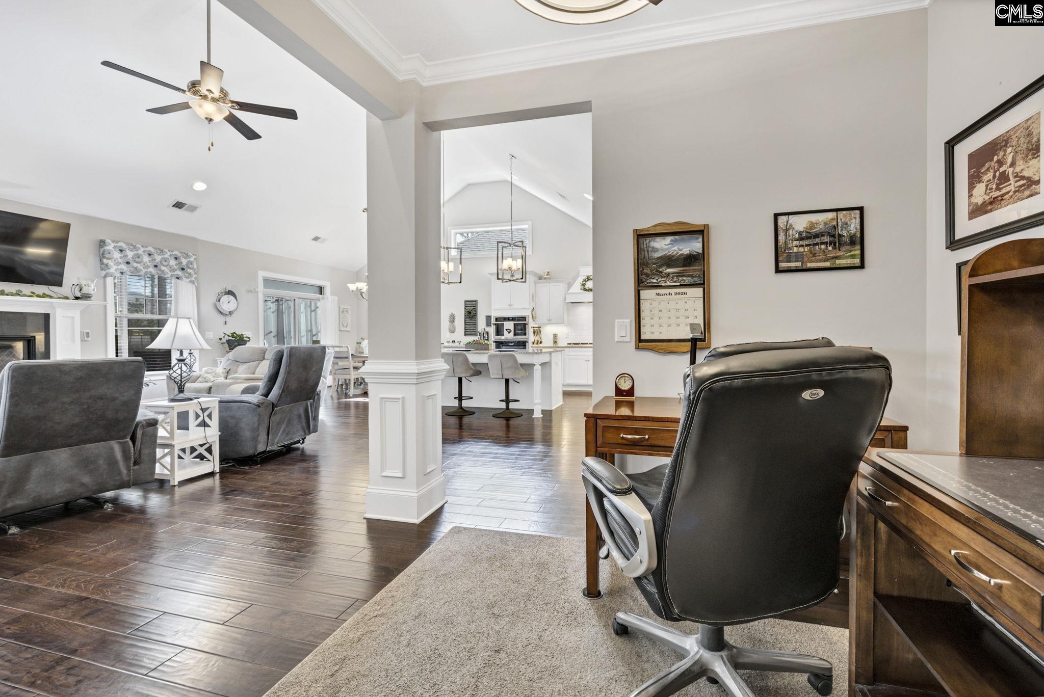 Welcome to easy, elegant living in The Villas at Woodcreek Farms, where a low-maintenance lifestyle meets beautiful design. This stunning one-level home offers 3 bedrooms and 2 full bathrooms with a thoughtfully designed floorplan perfect for comfortable everyday living. Step inside through the grand vaulted foyer, filled with natural light and beautiful gleaming hardwood floors. High ceilings and hardwoods continue throughout the main living areas, where an open-concept living and dining space flows seamlessly alongside a versatile flex room—perfect for a home office, sitting area, or additional entertaining space. The stunning modern kitchen features granite countertops, stainless steel appliances, a gas range, and a spacious walk-in pantry with wood shelving, offering both style and functionality. The inviting living room showcases a beautiful raised hearth fireplace and custom built-in bookcases, creating a warm and welcoming centerpiece for the home. Enjoy year-round relaxation in the enclosed sunroom with an Eze-Breeze system, overlooking the fully fenced backyard with a brick privacy fence—a peaceful retreat for morning coffee or evening unwinding. The spacious primary suite features hardwood floors, a tray ceiling, and a beautifully appointed bathroom with double vanities, granite countertops, a soaking tub, and a fully tiled zero-entry shower. The walk-in closet with custom wood built-ins provides exceptional storage and organization. Two additional bedrooms share a full bathroom, offering plenty of space for guests, family, or hobbies. Best of all, yard maintenance is included, allowing you to enjoy the beauty of your home without the upkeep. Experience the ease of one-level, low-maintenance luxurious living in one of the area’s most desirable communities. Disclaimer: CMLS has not reviewed and, therefore, does not endorse vendors who may appear in listings.