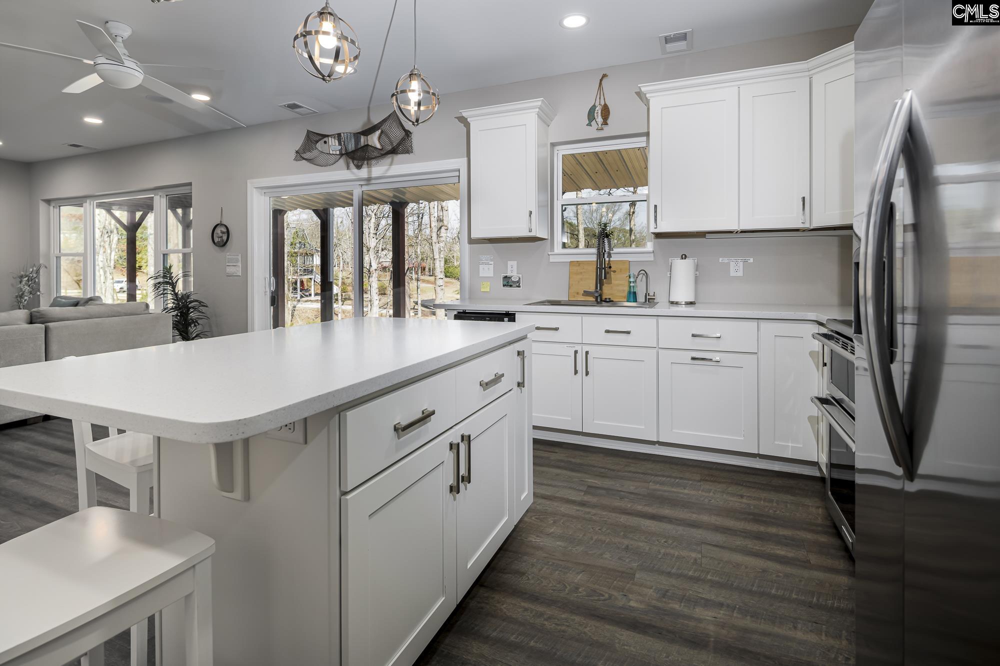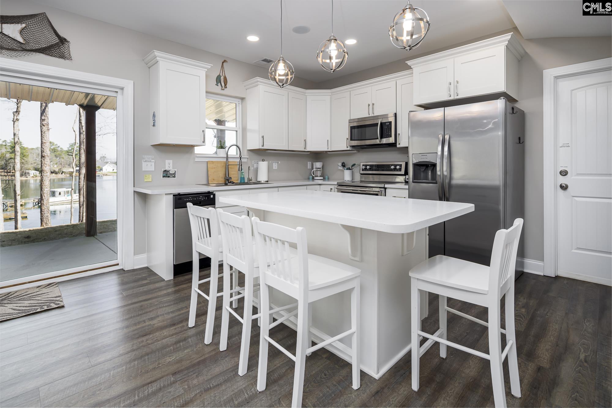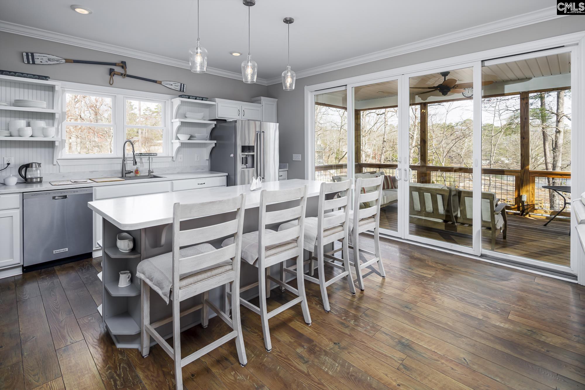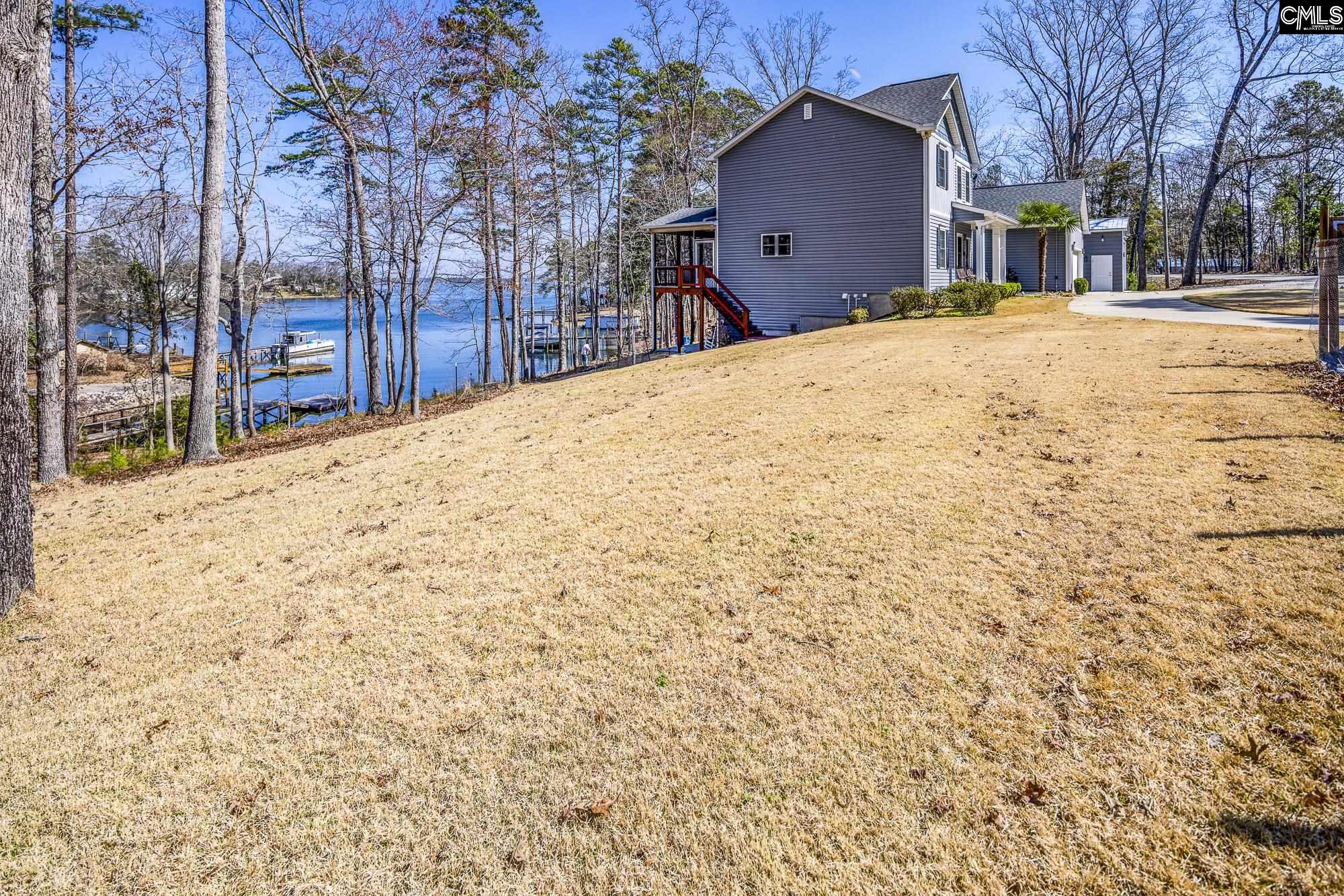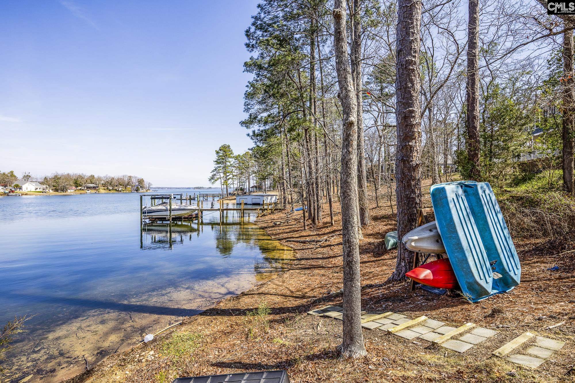 Rare half-acre (.47) lakefront retreat on Lake Murray! Offers ~3,400 sf of finished living space with 5 bedrooms plus 2 private bonus rooms. Located on a quiet, protected cove with breathtaking big water views, ~200' of shoreline with plenty of room to park boats, plus an additional half acre of fringe land for extra privacy. Dramatic floor to ceiling windows in the family room and kitchen showcase the gorgeous lake views the moment you step through the front door. MAIN LEVEL: open concept living with high smooth ceilings, durable faux-wood floors, screened-in porch, and a grilling-friendly lakeside deck. Main owner’s suite opens directly onto the upper deck for effortless indoor/outdoor living. KITCHEN: Stylish Corian countertops, chef's sink, and spacious pantry. Convenient guest bath and main level laundry adjacent. UPPER LEVEL: cozy carpeted family room overlooking the lake, plus 3 bedrooms (2 with southeast facing windows and a shared bath), plus a lake-view bedroom with full bath, (perfect guest or second suite). LOWER LEVEL: spacious living with movie theater surround sound, massive windows and big lake views, one private bedroom/office, 2nd kitchen, 2nd laundry, full bath, and a half bath. Ideal for entertaining, multigenerational living, or rental income. Bonus 9' x 20' room with separate private entrance, this room has a utility sink, pet door and it is heated and cooled. Use for storage, or hobby room. OUTDOOR AMENITIES: huge covered patio for entertaining and grilling, backyard fire pit, multiple grassy areas and easy shoreline access to park your boat. PRACTICAL FEATURES: attached two car garage plus a detached 25'x16'x12' car garage, whole-house generator, lake pump irrigation, well-watered garden, RV parking with 30-amp hookup, new gutters throughout. Currently operating as a SHORT TERM RENTAL, flexible income potential by renting lower level or entire home. Located in LEXINGTON ONE SCHOOL DISTRICT and within walking distance to SIESTA COVE MARINA. Potential to acquire fringe land for DOCK permitting subject to Dominion approval.Experience Lake Murray living at its best, quiet protected cove, gorgeous lake views, and strong income potential. Dis