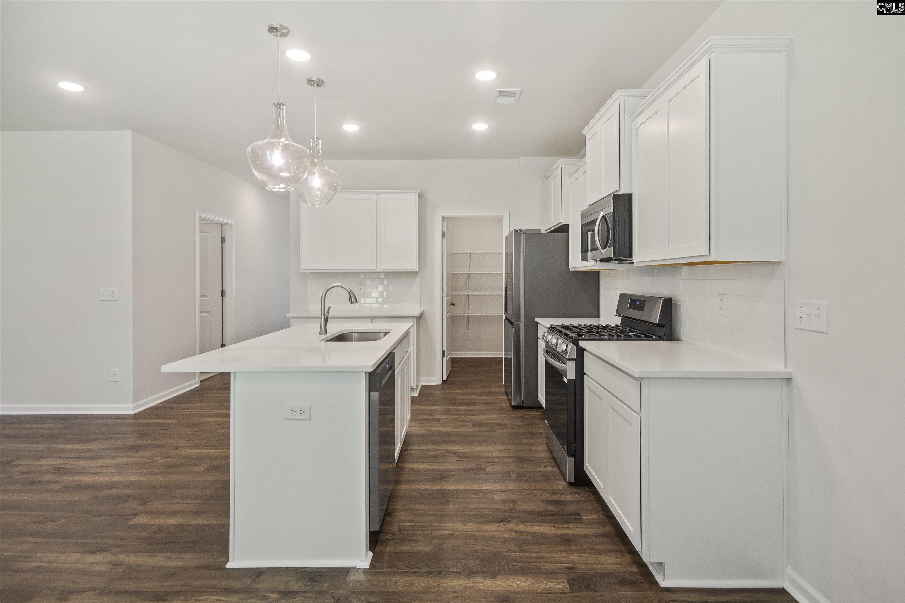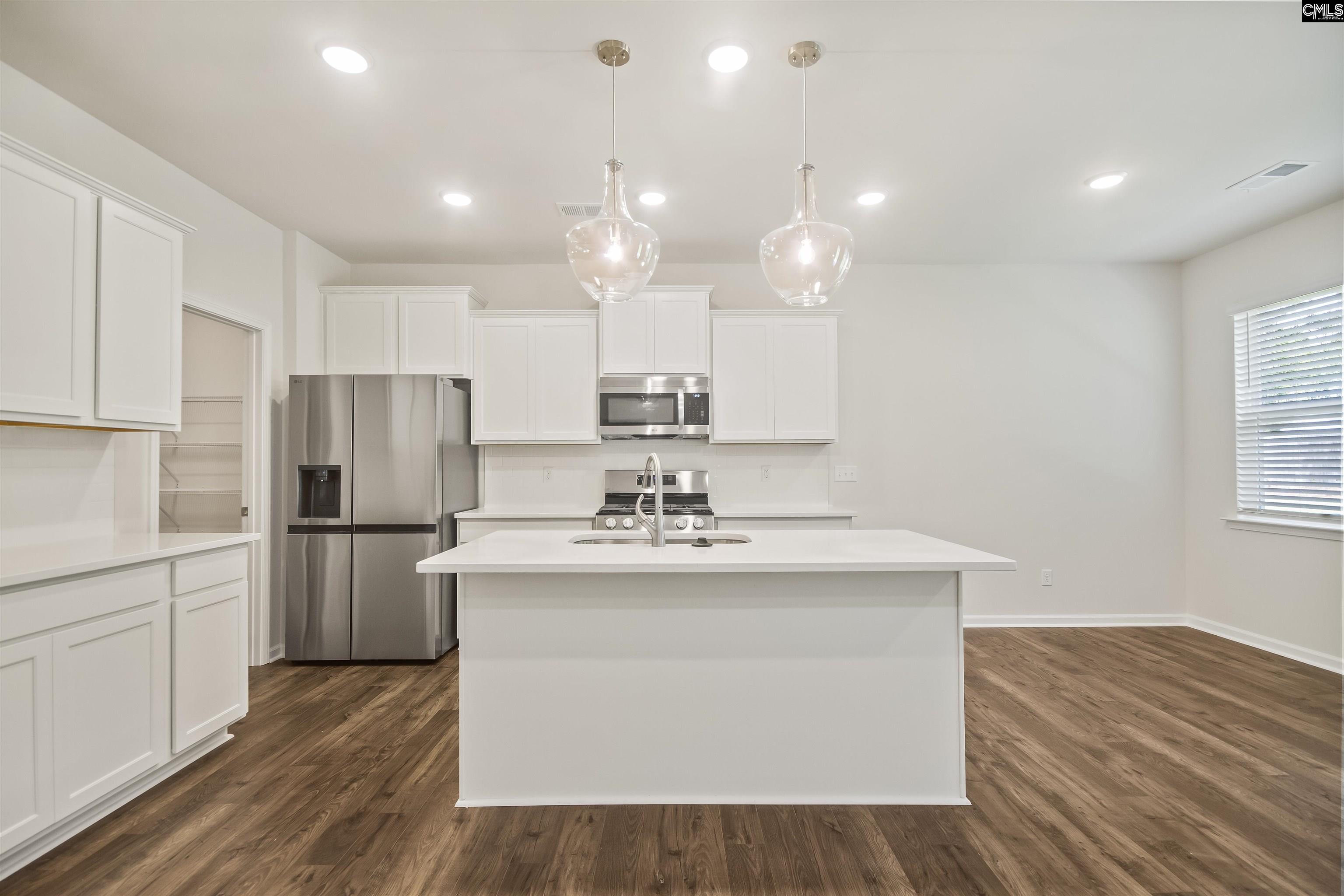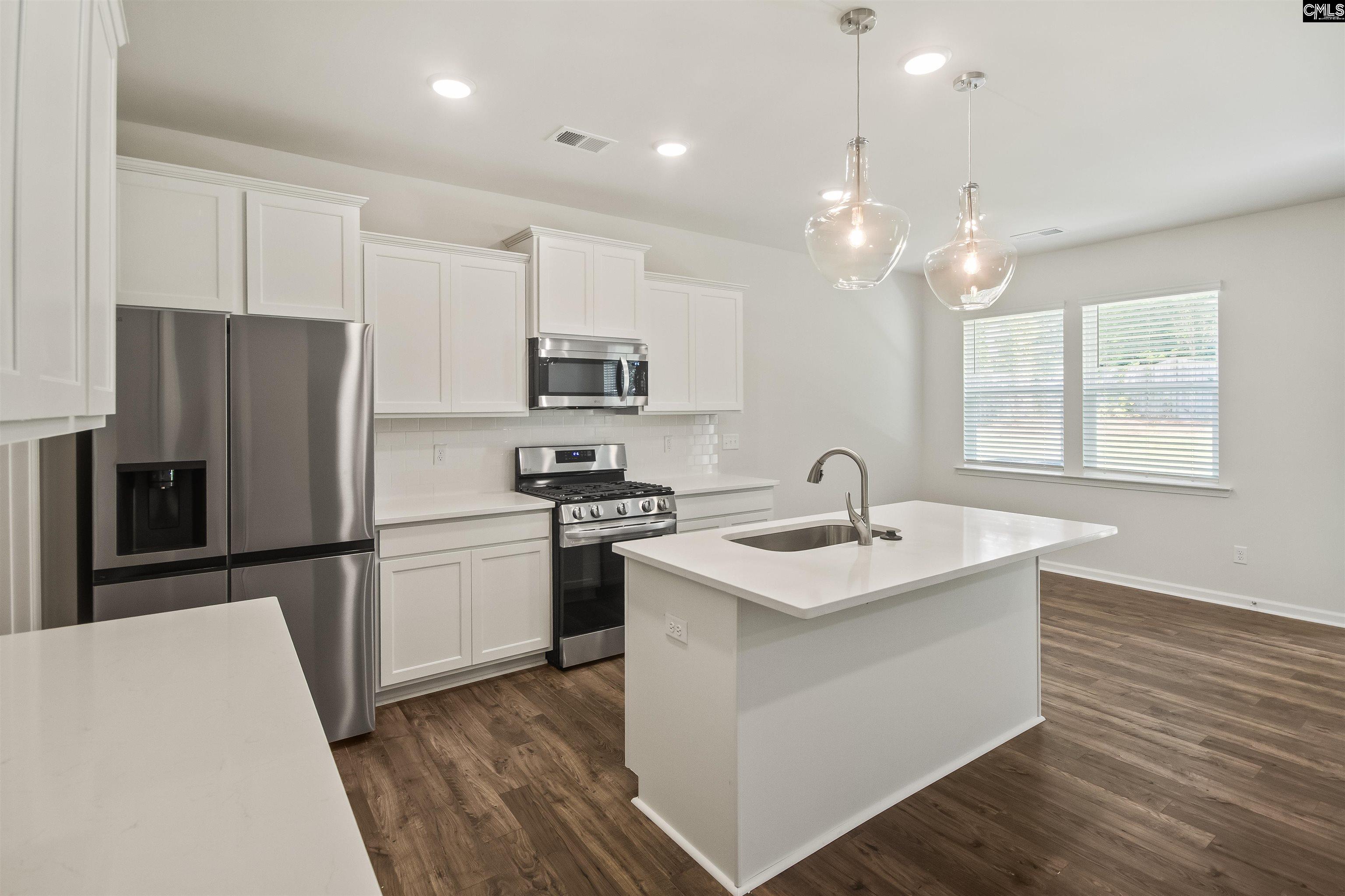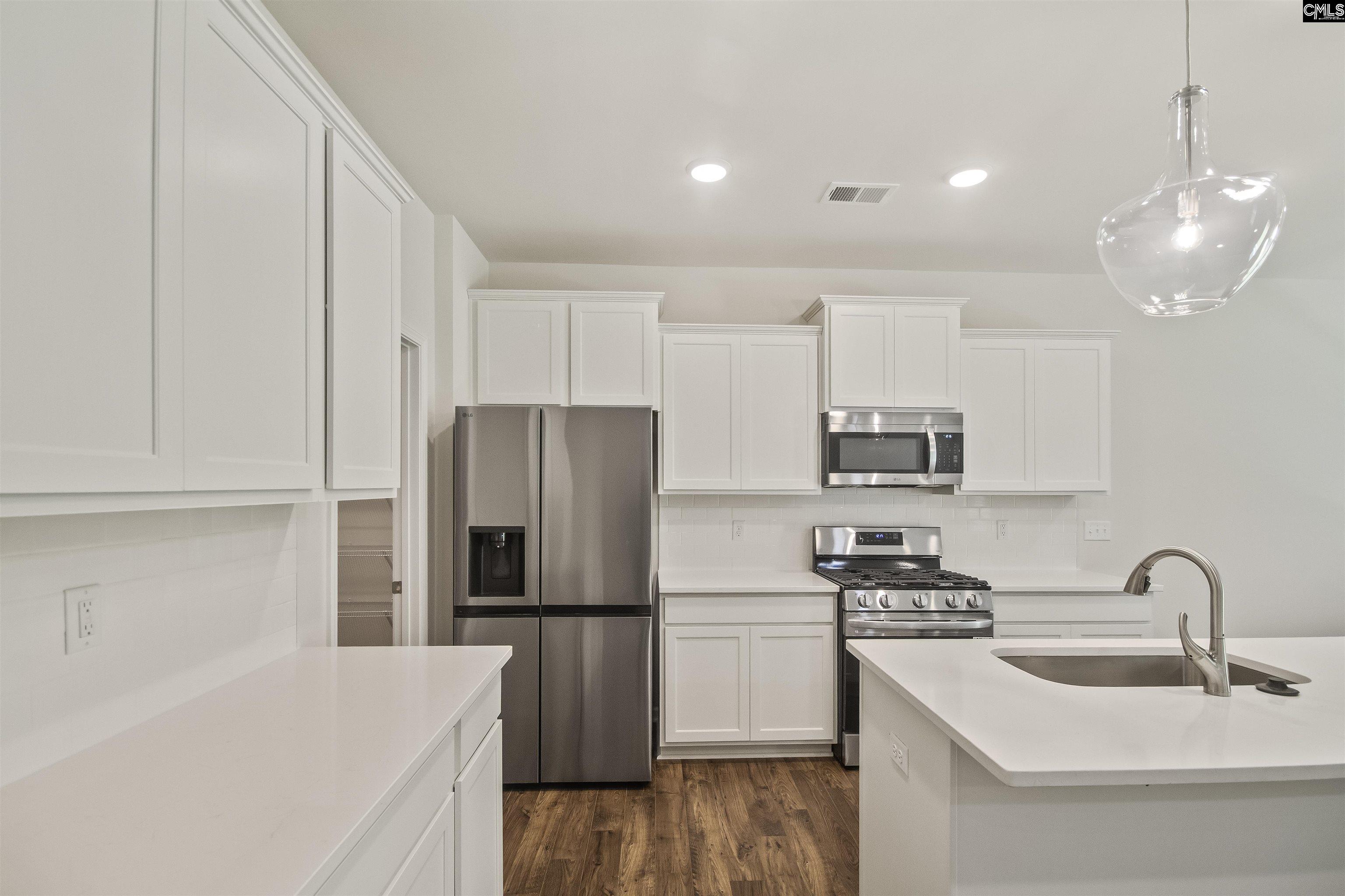 The Insha offers cozy floorplan living with master on main. Upstairs are three additional bedrooms with walk-in closets and a full bathroom with dual vanity. Home built with LG appliances. Home enjoys a designer kitchen with white shaker cabinets, quartz countertops, undermount double split sink & white tile backsplash. Pull out Kitchen faucet. Whirlpool gas stove, dishwasher, microwave, stainless steel side by side fridge & disposal. Mohawk hard surface laminate flooring on the main level. First floor is nine-foot smooth ceilings. Ceiling fans in master & great room. The owner's suite has an ensuite bath with quartz countertop, comfort height vanity, elongated toilet & ceramic tile flooring. Laundry room has tiled flooring. All units have carriage light, painted garage walls, full gutters & architectural shingles. Garage door opener with two remotes. Blinds on all windows Disclaimer: CMLS has not reviewed and, therefore, does not endorse vendors who may appear in listings.